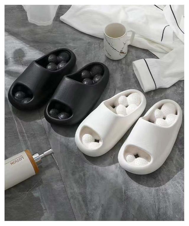 | 【機能】大き目の丸いボールが優しくじんわりと足裏の反射区を刺激し内臓機能、血流を改善します。 【弾力性】約4センチの厚底があるので、長時間立っても疲労感なし、さらにクッションもすぐれたスリッパです。また弾力性があり履き心地が良いです。 【滑り止め効果】靴底の裏面が細かな凹凸になっているためすべりにくい仕様となっています。 【排水・防臭効果】通気性が良いため排水と防臭効果に優れています。 | |