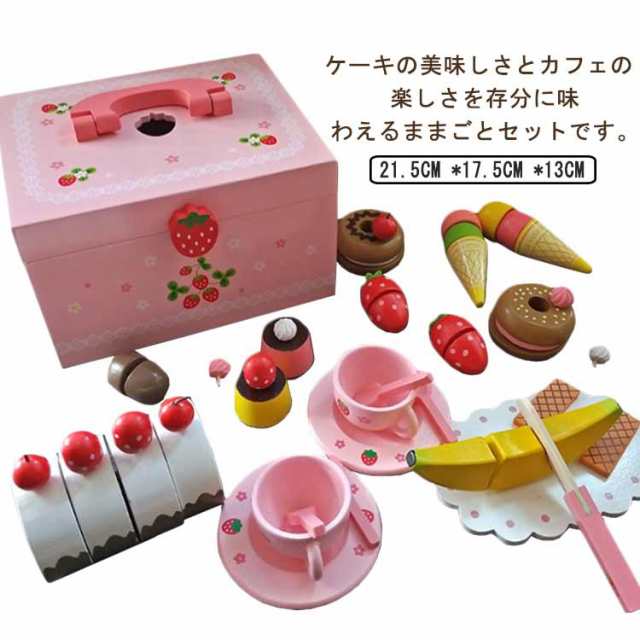 木製 おままごとセット 女の子 木のおもちゃ スウィートカフェ デザート ケーキ アイスクリーム デザート ごっこ遊び お料理 お食事 マグネット イチゴ 女児 ガールズ 孫 キッズ 幼児 幼稚園 入園祝い
