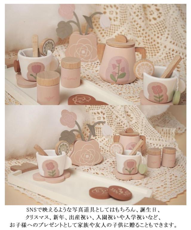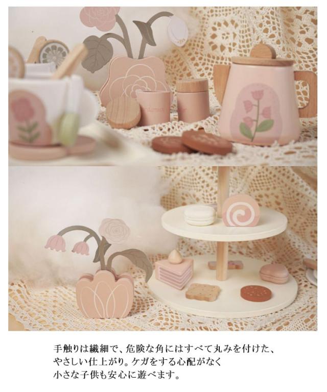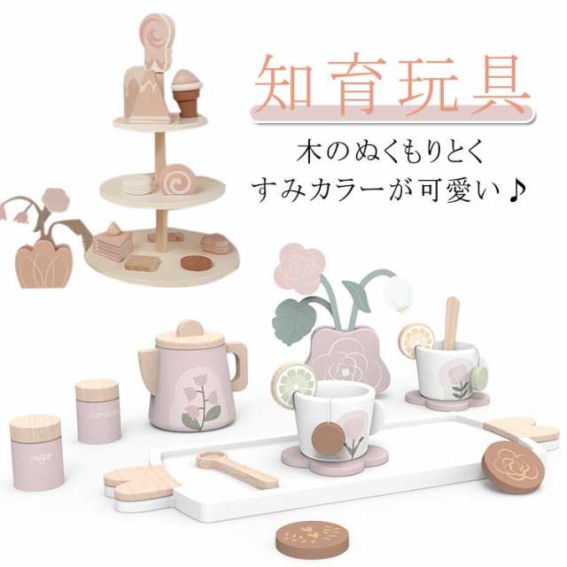おままごとセット ティーセット 木製 知育玩具 おもちゃ 木のおもちゃ ままごとセット アフタヌーンティー デザート セット ごっこ遊び 調理ごっこ ティーカップ ティーポット キッチン ごっこ遊び かわいい おしゃれ