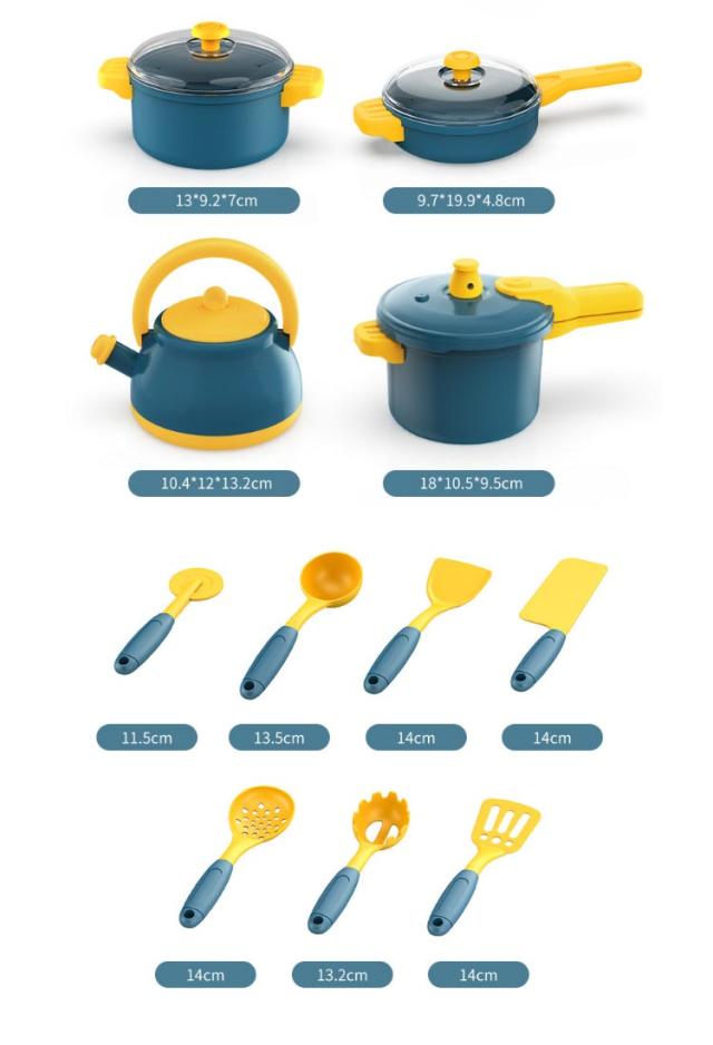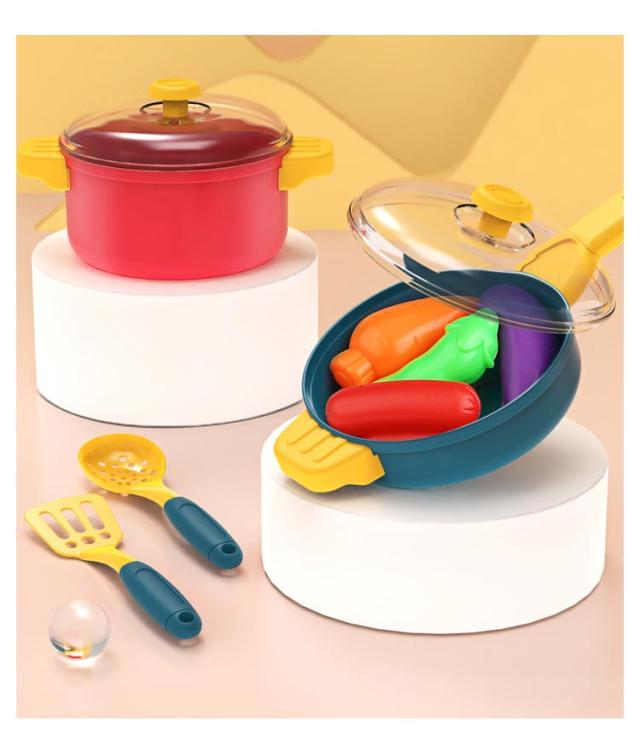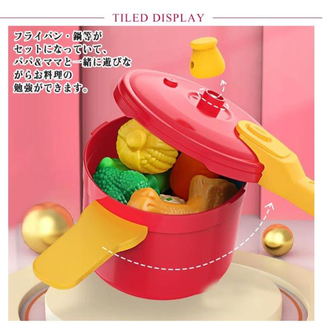 | お子様の知育に♪子供用キッチンおもちゃ、ままごと料理セット! フライパン・鍋等がセットになっていて、パパ&ママと一緒に遊びながらお料理の勉強ができます。 【セット内容】総計23個セット(圧力鍋*1、ケトル*1、両手鍋*1、フライパン*1、キッチンツール*7、目玉焼き*1、とうもろこし*1、皿*1、箸*1、焼きチキン*1、餃子*1、米*1、ソーセージ*2、飯碗*1、まな板*1、ブロッコリー*1 | |