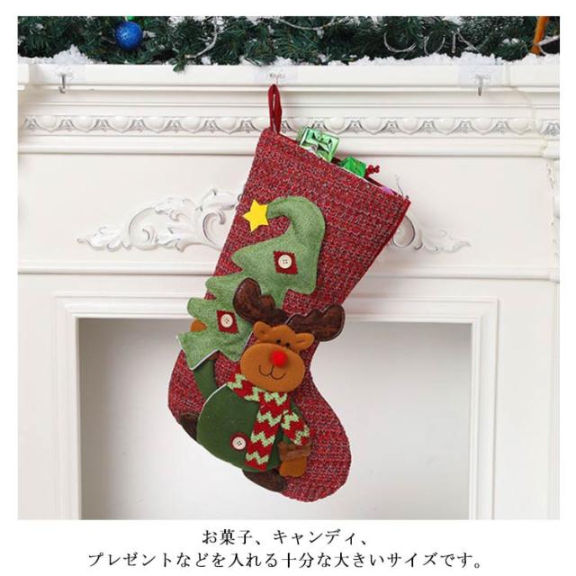 | 細やかな作り・かわいいデサイン・立体的なクリスマスソックスです。 お菓子、キャンディ、プレゼントなどを入れる十分な大きいサイズです。 明るい色で人目を引きやすいし、喜びの雰囲気を盛り上げることができます。 自宅、レストラン、お店などのクリスマスデコレーションの装飾に適しています。 丈夫な掛け紐が付いているので、ギフトを詰めても安全に掛けられます。 | |