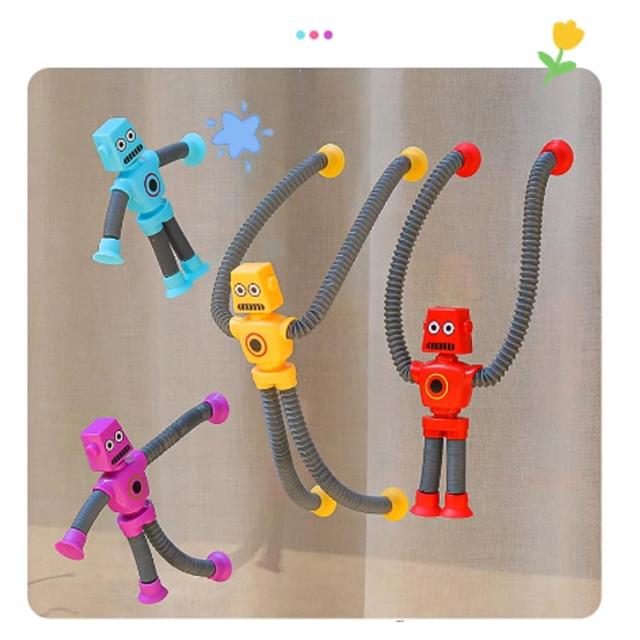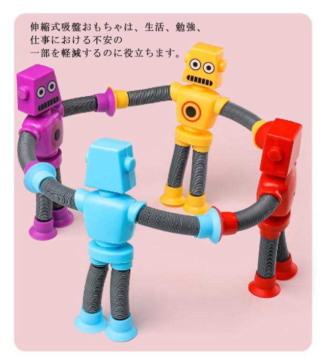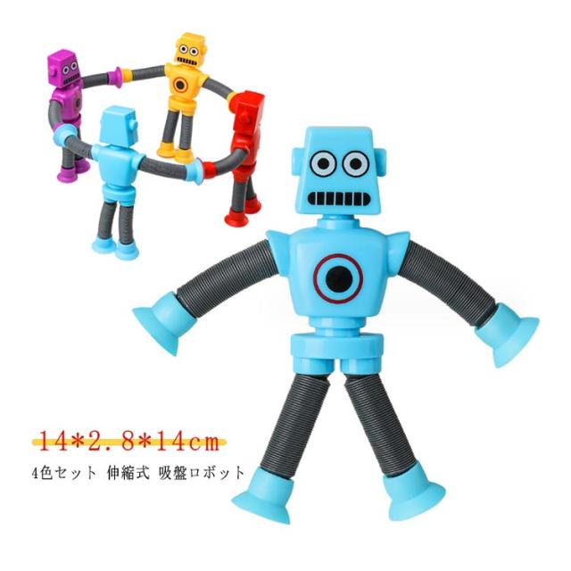 4個セット 壁も使える 知育玩具 光る 伸縮式 ロボット 吸盤 男の子 女の子 お風呂 おもちゃ 誕生日 プレゼント 知育 玩具 子供 1歳 2歳 3歳 4歳 5歳 6歳 モンテッソーリ 立体パズル 室内 指先の知育 遊び 柔らかい ごっこ遊び クリスマス