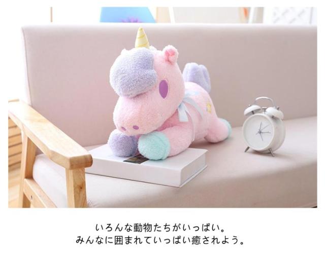| ユニコーン ぬいぐるみ 55cm/25cm/38cm 癒しキャラクターに仲間入りした《ねむねむ》の抱きまくらサイズ。 ふにゃぁーと力が抜けてリラックスしている様子がかわいい抱きまくら。 一緒にすやすや眠りたくなるような癒しアイテムです。 いろんな動物たちがいっぱい。みんなに囲まれていっぱい癒されよう。 | |