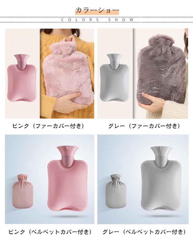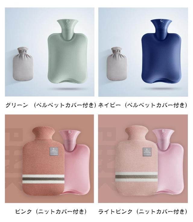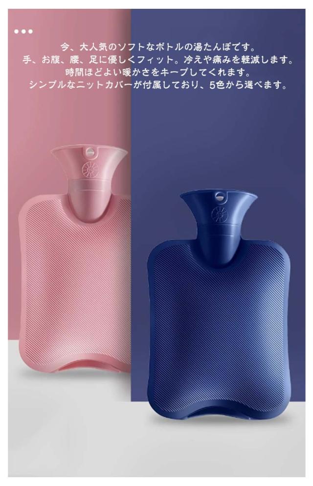| 1L/2L大容量 選べるカバー3種類 温冷両用 電子レンジ対応 湯たんぽ 今、大人気のソフトなボトルの湯たんぽです。 手、お腹、腰、足に優しくフィット。冷えや痛みを軽減します。 時間ほどよい暖かさをキープしてくれます。 シンプルなニットカバーが付属しており、5色から選べます。 電子レンジで温めることができるため、忙しい時でも手軽に使えます。 冬の冷たいお布団に入れて、優しく温めたり、オフィスのエアコン冷え対策にも◎ 水を入れて、冷蔵庫で冷やすか、氷を入れるだけで簡単に水枕に変身。 夏の寝苦しい夜、発熱した時にも大活躍です。 容量は1L&2Lで、手や腰やお腹などを温めるのに適しています。 柔らかなカバーは心地よく、リラックスタイムにぴったりです。 プレゼントにもおすすめで、寒い季節を、この湯たんぽで快適に過ごしましょう。 01.長い時間温かい 保温性の高いPVC素材と厚手ニットで長時間保温。 1時間の温度≧63℃ 3時間の温度≧45℃ 6時間の温度≧30℃ ※湯たんぽを90度にし、室内で測定したデータにもどついて表示 02. 無毒無臭PVC ほとんどの湯たんぽとは違い、高品質の合成PVCを採用しており、お湯を追加する高温でも臭いがしません。 3D斜めストライプ、マットな質感、滑りにくく、放熱均一、長時間保温可能です。 03.厚手PVC・水漏れしない 2.3mm厚のPVC材質で、防爆が漏れない、耐劣化性。 水漏れ防止設計の気密性の高いキャップを採用。 耐久性に優れた素材で破裂や水漏れを防ぎます。 04.夏冬使える温冷両用 温冷両用で使えます。 冷蔵庫で冷やして保冷剤としても使える。 寒い冬に湯たんぽとして暑い夏・発熱時に水枕として 05.繰り返し使え経済的 電子レンジで温めて繰り返し使える お湯を入れても使えるのはもちろん、電子レンジで温めOK。 ※レンジで温める場合は必ずニットのカバーは外してから温めてください。 TIPS:水の3分の1を入れ、 レンジ出力1500wで2へ3分加熱。 06.柔らかく温かいなカバー 柔らかく取り外し可能なニットカバーが付いており、 カバーは高温の熱傷を防止し、保温時の長さ増加。 汚れている場合は、手洗いまたは交換できます。 カバーは高弾力があり、着脱しやすいです。 07.シーンにより選べる2つ容量 寒い夜のお供に お | |
