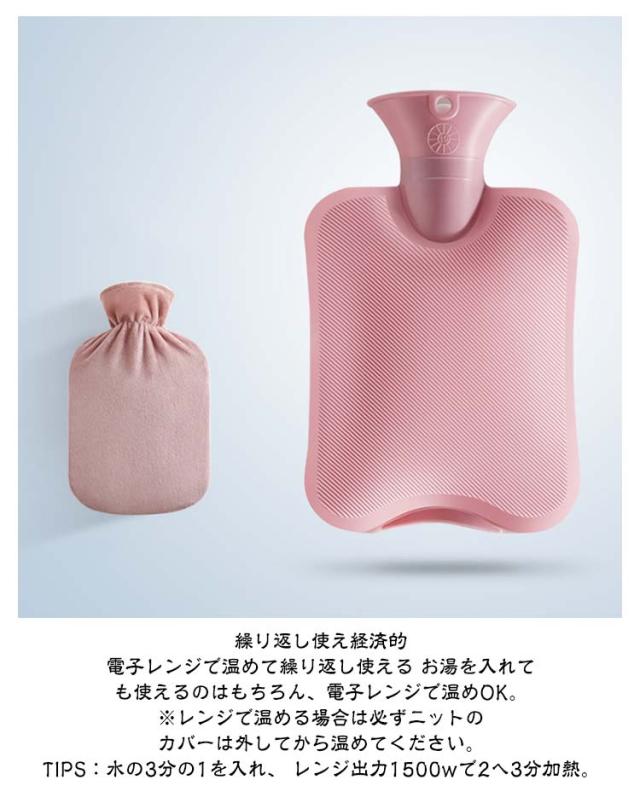 ニット カバー 付き 湯たんぽ 1L 2L 温冷両用 レンジ対応 繰り返し 電子レンジ温める 1000ml 2000ml 注水式 電気不要 節電 省エネ 冷え対策 一晩中あったか 長時間 柔らか 厚手PVC 水漏れ防止 手足温め 保冷剤 暖かい あたたかい
