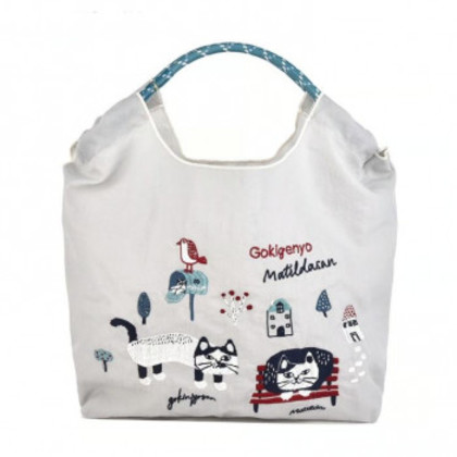 クスグルジャパン 撥水加工 刺繍ワッシャーバッグ Mサイズ マチルダさん柄 グレー 24-7150 |b03