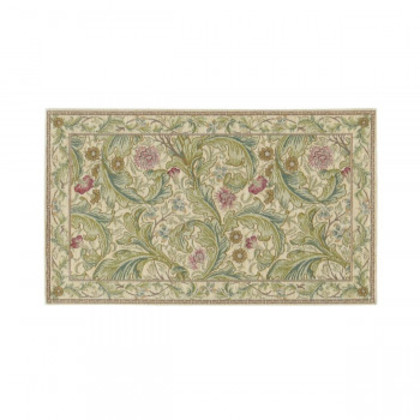 商品詳細:1912年にウィリアム・モリスの一番弟子である、ジョン・ヘンリー・ダールがデザインしたものです。大きくうねるアカンサスの葉、赤いカーネーション、丸くて黄色いメランポジウム(キク科の花)、ブルーで描かれているオダマキの花たちが表情豊かに描かれています。 生産国:ベルギー 素材・材質:ポリエステル44%、アクリル41%、綿12%、ポリプロピレン3% 商品サイズ:約45×78cm 仕様:滑り止め加工厚さ4mm(周囲10mm)