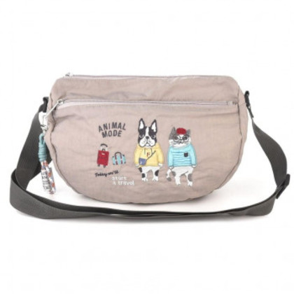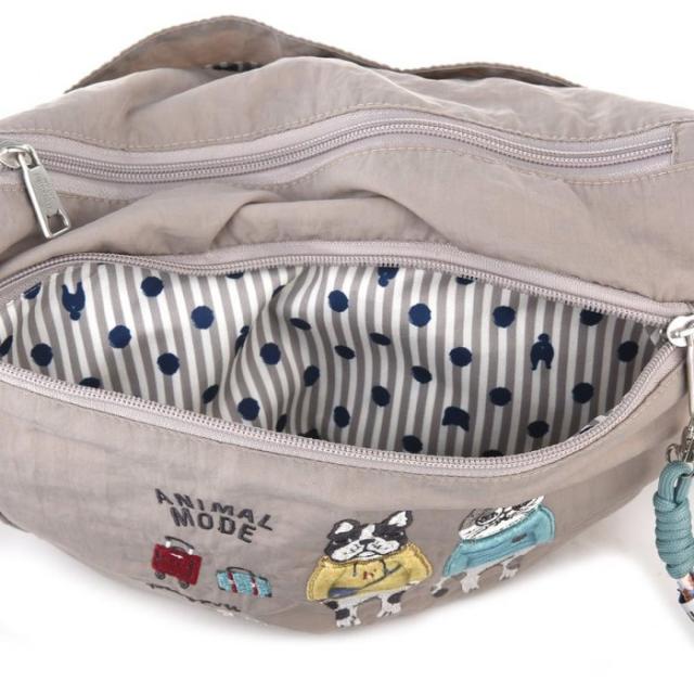 クスグルジャパン 撥水加工 刺繍ワッシャーバッグ ショルダーバッグ アニマルモード柄 モカ 24-7599 |b03