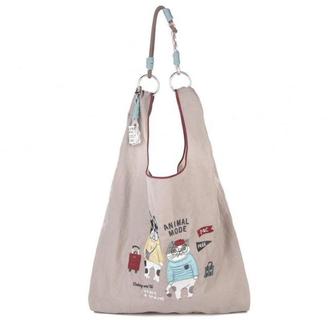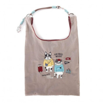クスグルジャパン 撥水加工 刺繍ワッシャーバッグ 2WAYサブバッグ アニマルモード柄 モカ 24-7602 |b03