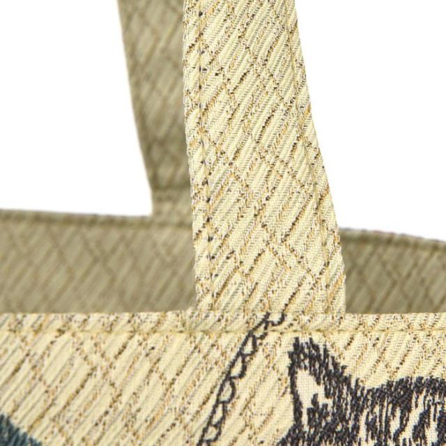 商品詳細:細くて何色もの色糸で織りあげたゴブラン織りはイラストの繊細な部分を表現。少し張りのある生地で高級感と存在感のあるバッグです。季節を問わず使って頂けます。使い勝手の良いデザインです。内ポケットが蓋になります。 生産国:中国 素材・材質:ポリエステル100%(裏布)ポリエステル100% 商品サイズ:タテ30×ヨコ底26×マチ底20cm、持ち手長さ:48cm