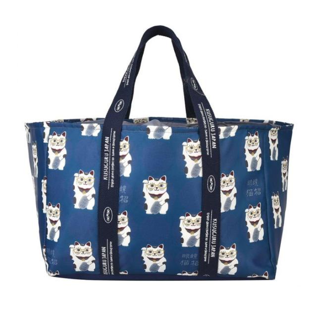 クスグルジャパン 保冷・保温バッグ 保冷・保温お買い物バッグ 猫招き柄 ブルー 25-8194 |b03