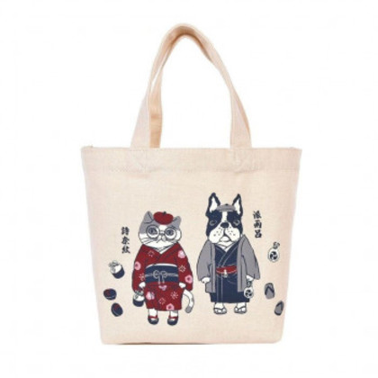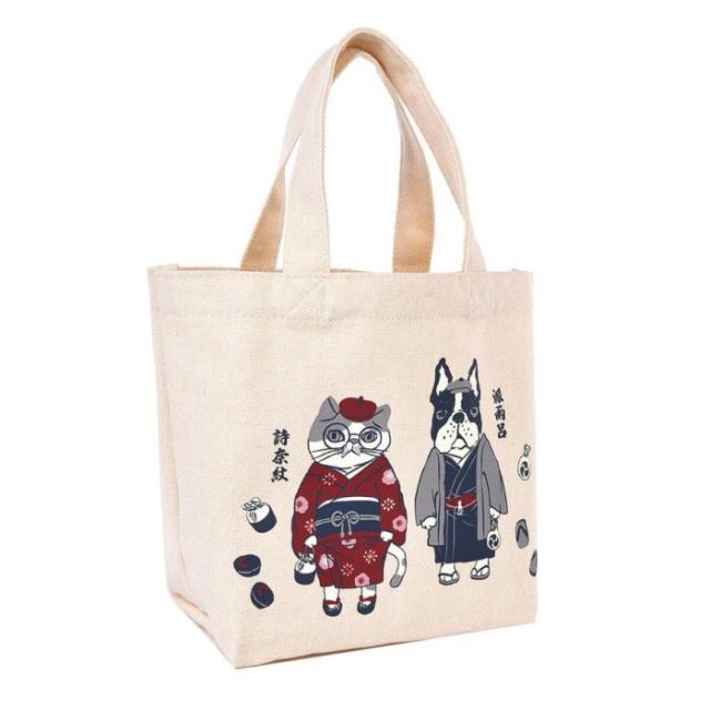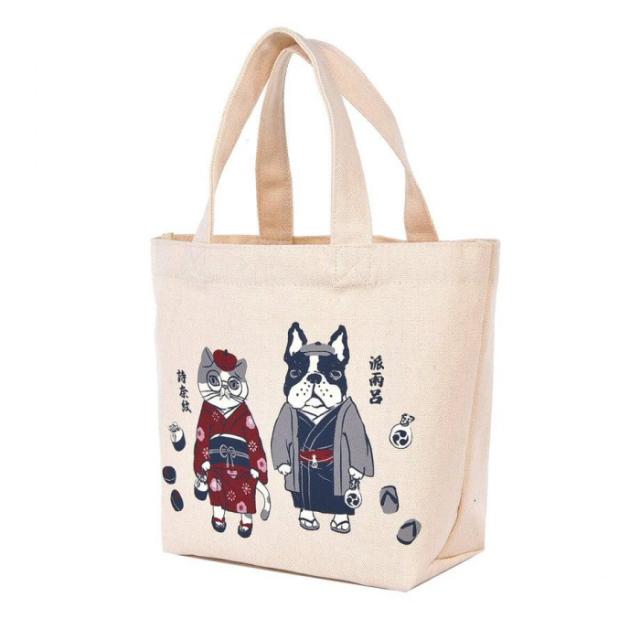 商品詳細:いつもハイセンスな装いのシナモン(詩奈紋)とパウロ(派雨呂)。和服姿もお似合いです。 生産国:中国 素材・材質:キャンバス生地:ポリエステル65%、綿35% 商品サイズ:22(タテ)×20(ヨコ底)×11(マチ底)cm、持ち手の長さ:33cm