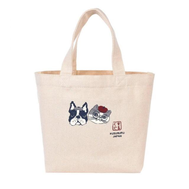クスグルジャパン 和柄キャンバスバッグ プチトートバッグ はんなりアニマルモード柄 23-6609 |b03