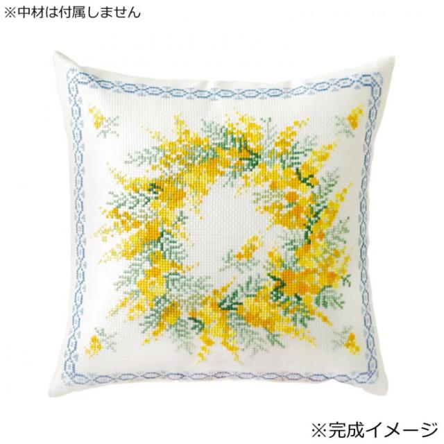 オノエ・メグミ Mimosa Collection クロスステッチ刺しゅうキット クッション ミモザのリース 6064 |b03