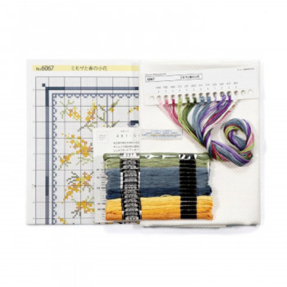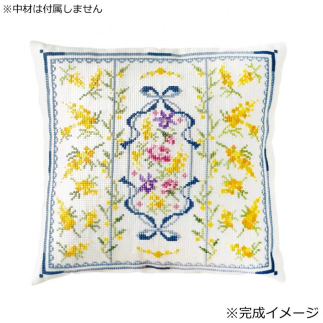 オノエ・メグミ Mimosa Collection クロスステッチ刺しゅうキット クッション ミモザと春の小花 6067 |b03