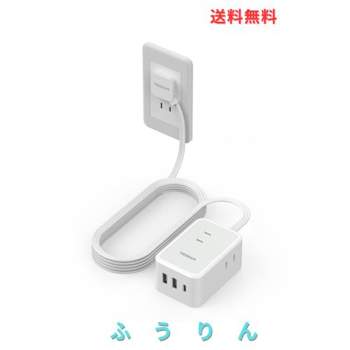 延長コード 2m 薄型 電源タップ usb コンセントタップ たこあしコンセント テーブルタップ TESSAN 3個AC 1個タイプC 2個タイプA 電源コー