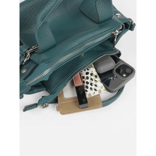 大きなシボのマットで柔らかなフェイクレザーを使用したバッグ。