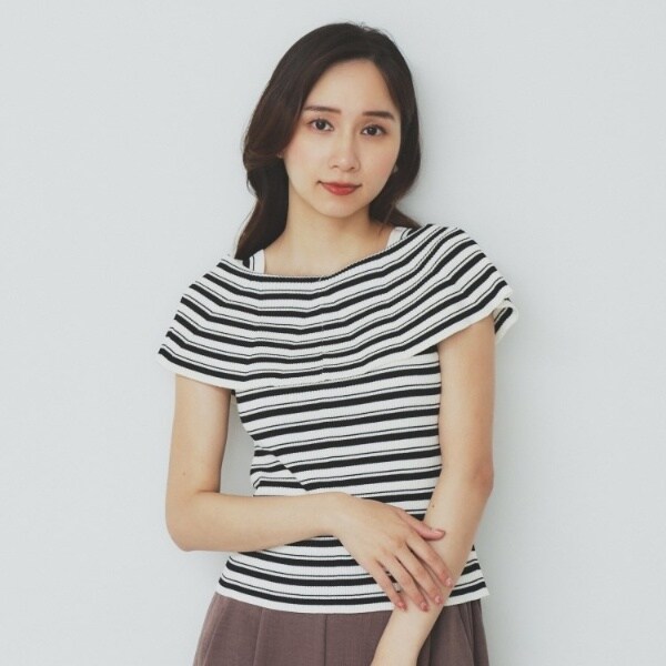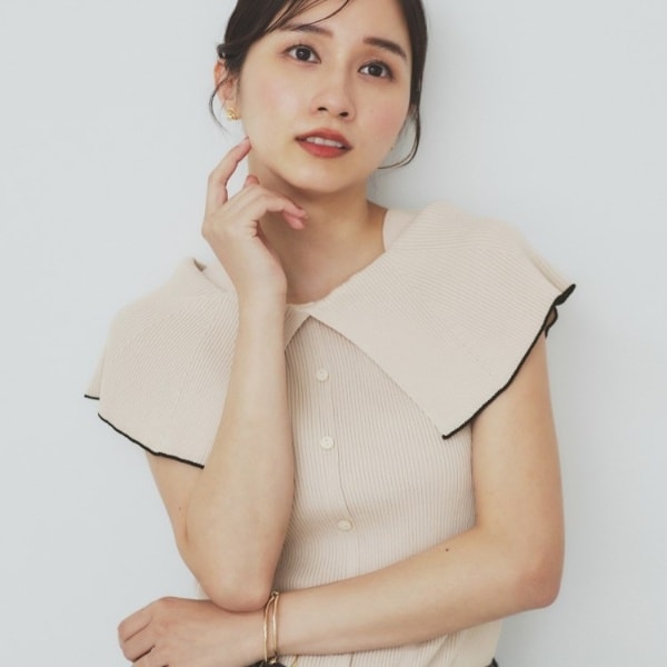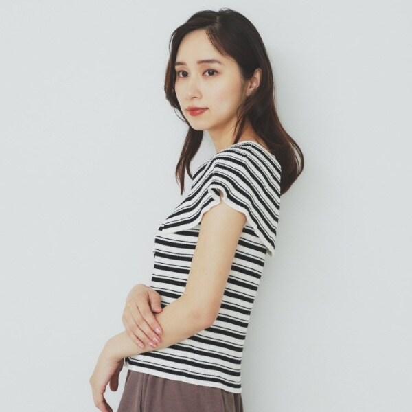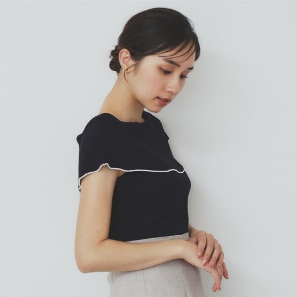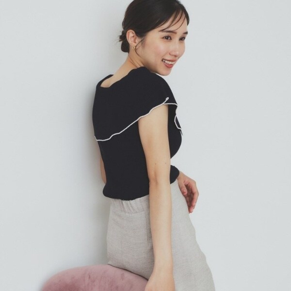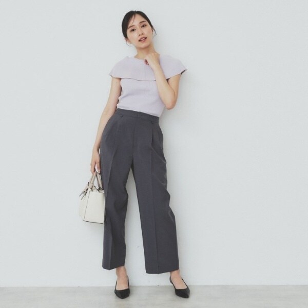 ・リブ編みの素材感が立体的で、身体のラインにフィットしながらも、柔らかさがあるため、動きやすくすっきり見せてくれます。