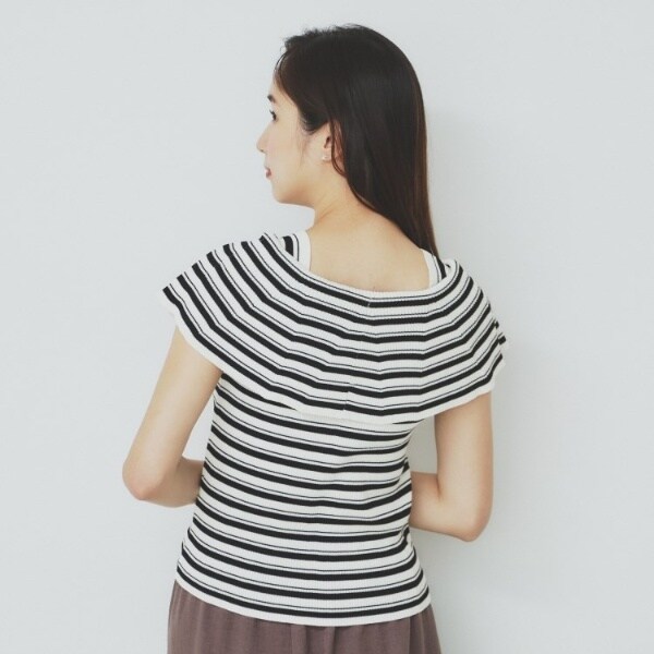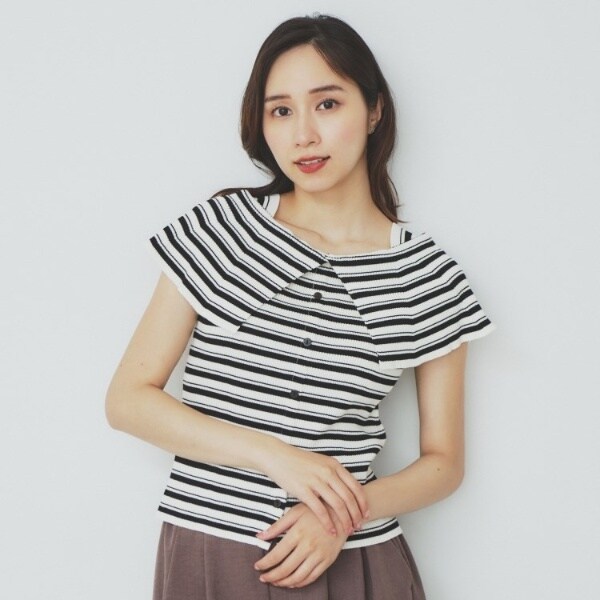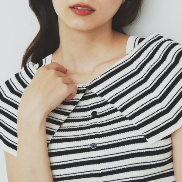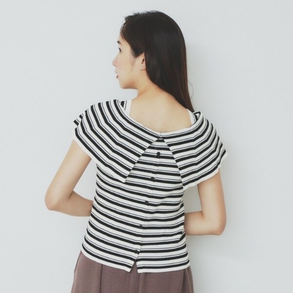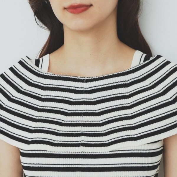 ・ビックカラーの前開き風とオフショルダー風と雰囲気を変えられる、前後2WAYでの着用が可能です。