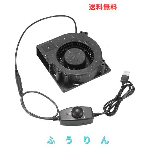 12CM 5V USB ブラスレスブロワーで、お客様のニーズによって風量が可調整で、結構便利なやさしいデザインです。(回転数1300RPM-2000 RPM、風量は10cfm〜21.87cfm可調整対応で、ノイズ範囲は45〜53dBAです)