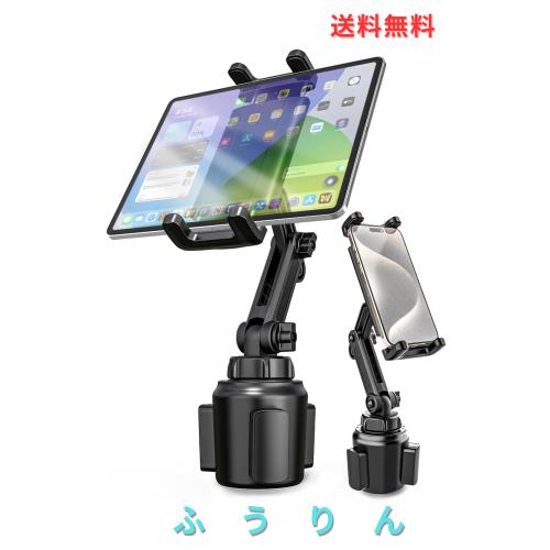 Kolasels 車載ホルダー タブレットカップホルダー 【2024進化伸縮アーム】 車載 タブレットカップスタンド 車ドリンクipadホルダー 車載