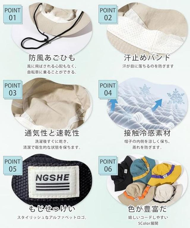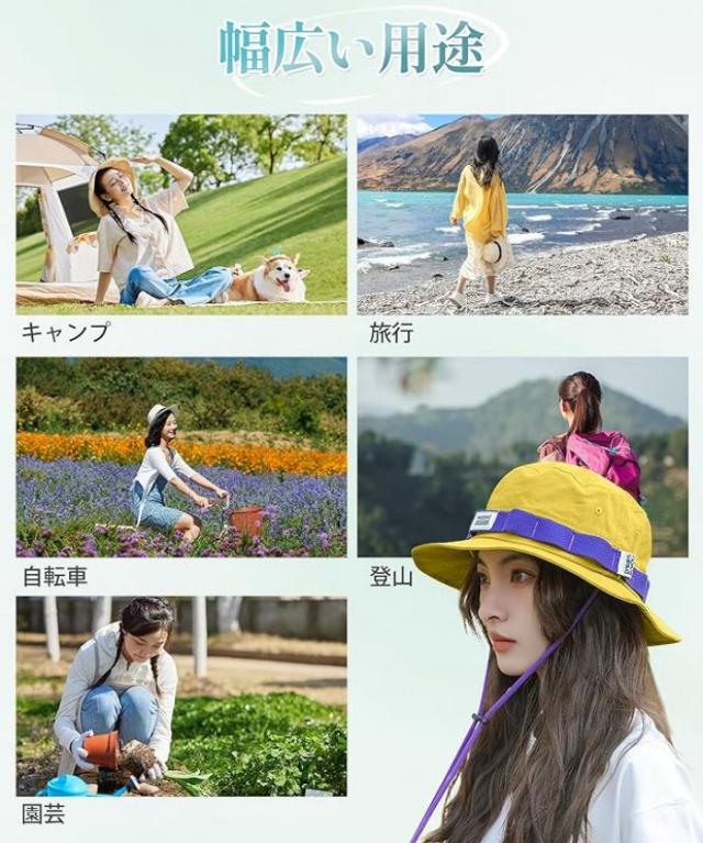 【 通気性・速乾性】:裏地には接触冷感メッシュ素材を使用、通気性と清涼感のある構造、蒸れることなく快適な通気性を実現しました。軽量素材で、肌やさしい、長時間の使用でも疲れにくいです。涼しいレディースハット、洗濯後の乾燥が速い、風通し良く、で長い間でも快適に使えるようになりました、この帽子は蒸れた感じを与えない。風の強い日でも飛ばされる心配のない防風チンストラップ付き!帽子 レディース、ハット レディース、サファリハット レディース。夏場の涼しさを演出します、暑い夏の日に涼しさをもたらしてくれる!