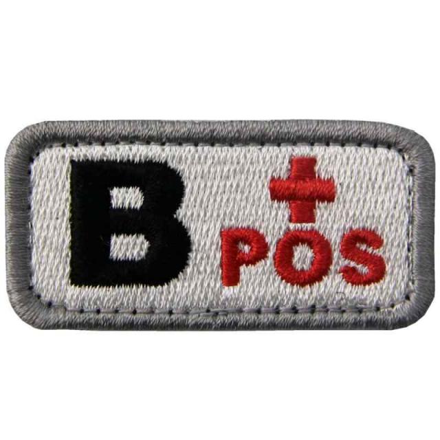 B型 + タクティカル 血液型 刺繍入りマジックテープワッペン (白と赤)