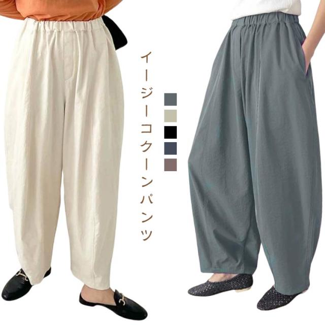 UVカット カジュアル コクーンパンツ ボトム イージー 速乾 おしゃれ レディース パンツ チノパンツ バレルレッグ きれいめ ロング丈 ウエストゴム ボトムス オフィス 無地 カーブパンツ