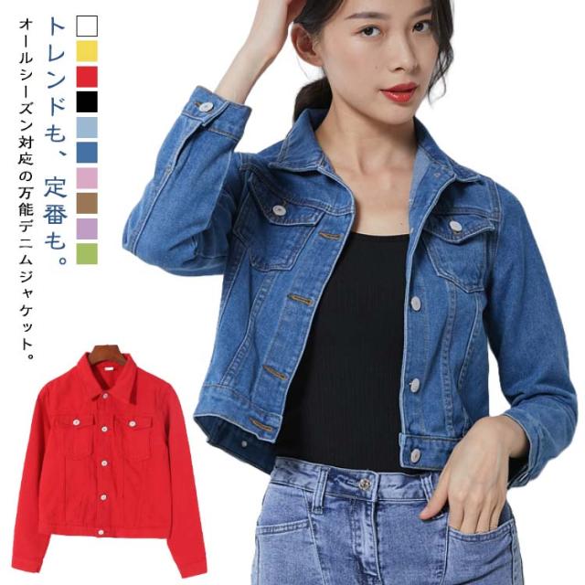 ショート丈 ジージャン ジャケット レ コート ジャケット 早い者勝ち ホワイト イエロー レッド ブラック ライトブルー ダークブルー ピンク カーキ パープル グリーン S M L XL 2XL 3XL