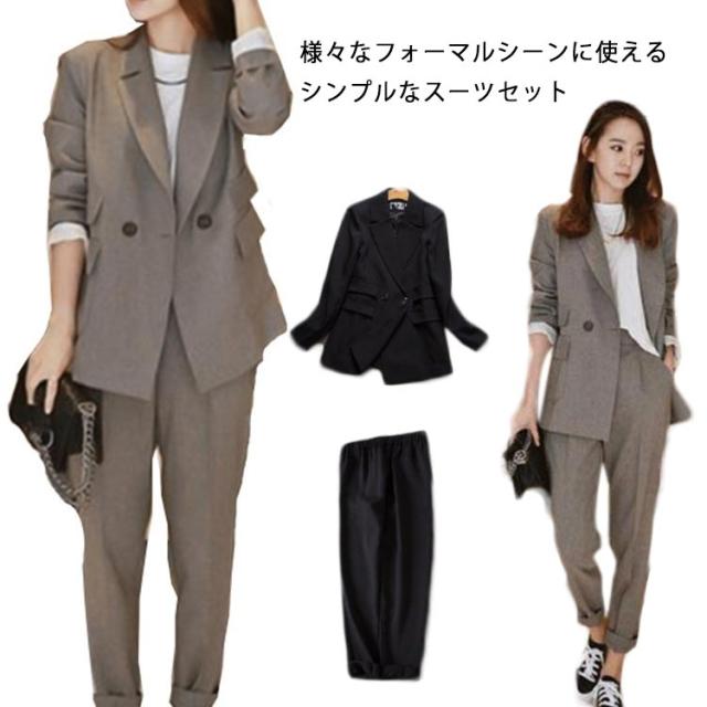 スーツ レディース 母 入学式 パンツ スーツ セットアップ パンツスーツ 人気 グレー ブラック S M L XL XXL
