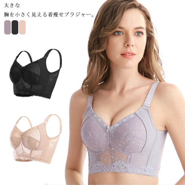 胸を小さく見せるブラジャー ナイトブラ 着痩せ ブラジャー 大きな胸を小さく見せるブラジャー ノンワイヤーブラジャー 胸が小さく見えるブラ 脇高 脇肉 スッキリ 背中 補正ブラ レース 刺? 育乳ブラ