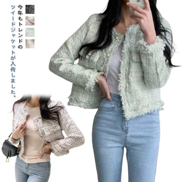 春 ノーカラー ショート丈 冬 服装 白 黒 レディース 入学式 ノーカラージャケット ツイードジャケット ショート ショートジャケット 卒業式 結婚式 セレモ二ー フォー 入園式