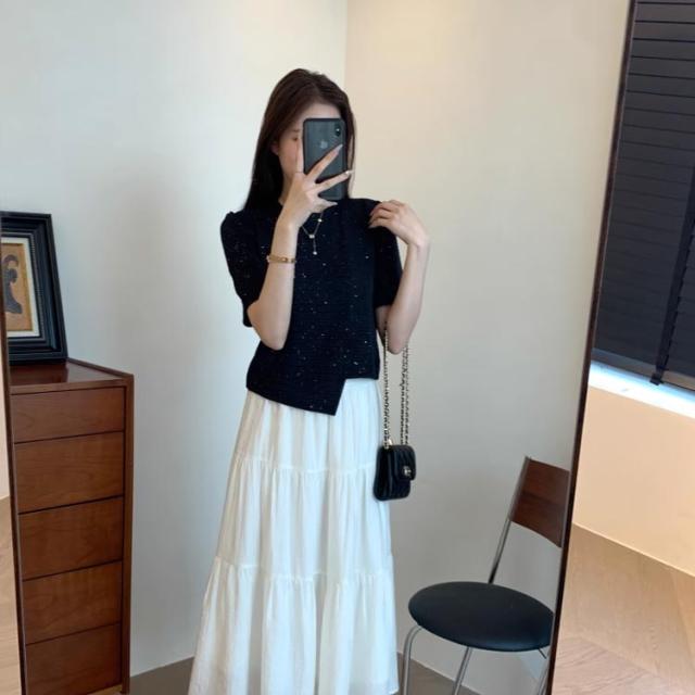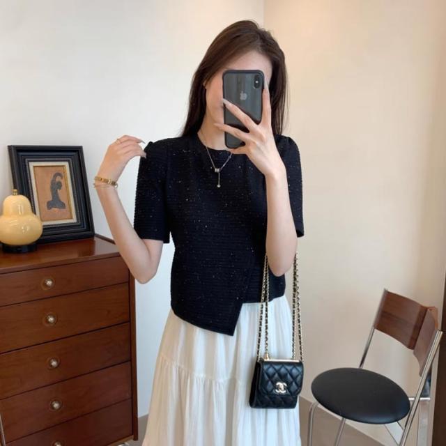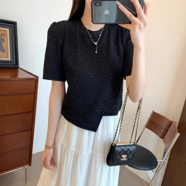 トップス 上品 ラメ入り ツイード調 tシャツ 半袖 ブラウス キレイめ プルオーバー デート オフィスカジュアル おすすめ おしゃれ トレンド 人気 韓国ファッション レディース