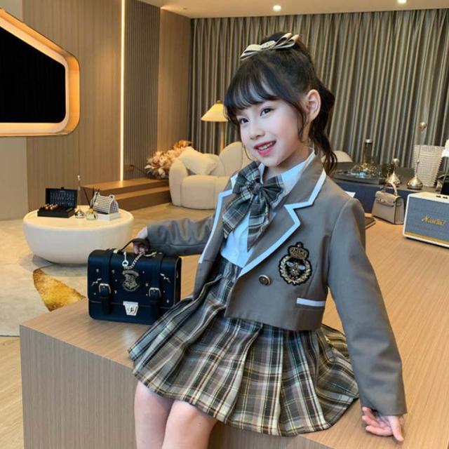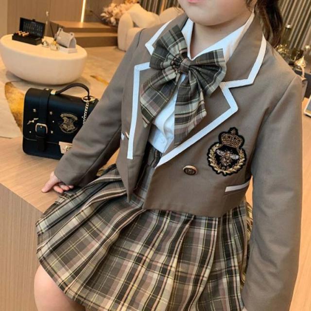 学生服 子供 女の子 小学生 テーラー キッズ スーツ カジュアルセットアップ カジュアルスカートセット 新作 3点セットネイビー 3点セットブラウン 100cm 110cm 120cm 130cm 140cm 150cm