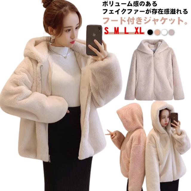 ファージャケット レディース ファーコート ふわふわ もこもこ フェイクファー ジャケット フード付き 秋冬 アウター ジップアップ ファー パーカー 冬服 防寒 あたっか ゆったり ふんわり 保温