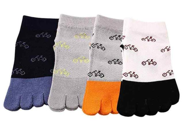 [InSomila] [インソミラ] キッズ ソックス 5本指ソックス 靴下 4足 セット 子供用 メッシュ 女の子 男の子 可愛い 綿 通園 通学 通気 ヒゲ柄 自転車柄 (自転車柄, 18.0-21.0 cm)