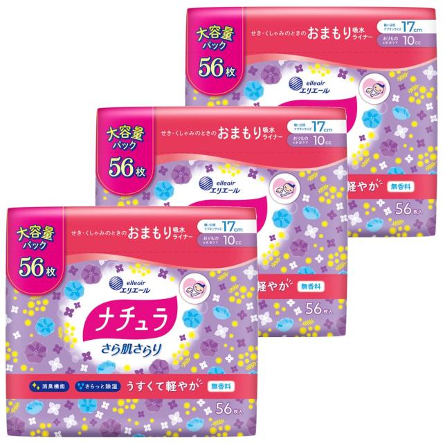 ナチュラ さら肌さらり 軽やか 吸水パンティライナー 10cc 17cm 168枚(56枚×3パック)【大容量】【まとめ買い】