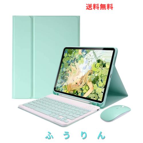 マウス付き iPadPro12.9インチ 第 6 5 4 3 世代 iPadAir13インチ M2 キーボードケース 可愛い キャンディーカラー レディース 分離式 カラーキーボード ケース ペンシル収納 女性 人気 (ミント)