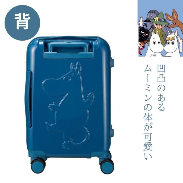 ●大きなムーミンのエンボス加工がデザインされたスーツケース。