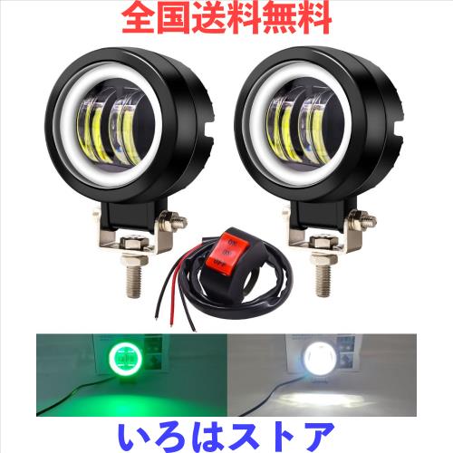 X-STYLE バイク フォグランプ カットライン 2色 白+緑イカリング 20W LEDワークライト 作業灯 高輝度・防水・長寿命・耐衝撃 丸型 12V 2