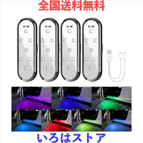 MAZERO 汎用 7色発光 車用ドア 警告灯 追突防止 RGB ドアライト カーテシランプ USB-C充電式 ウェルカムライト 自動感応 マグネット式 非
