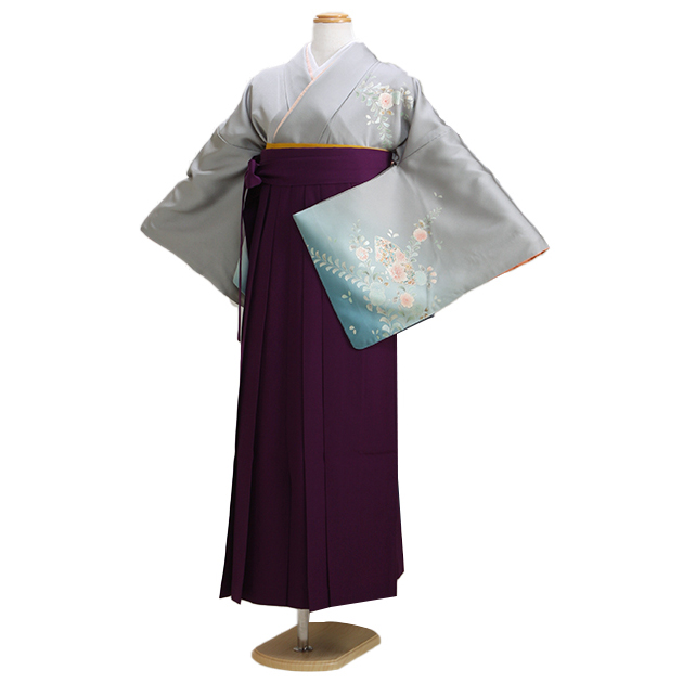 卒業式 袴セット 正絹 袴セットレディース 卒業式 袴 レンタル グレー色 送料無料 FAGH051