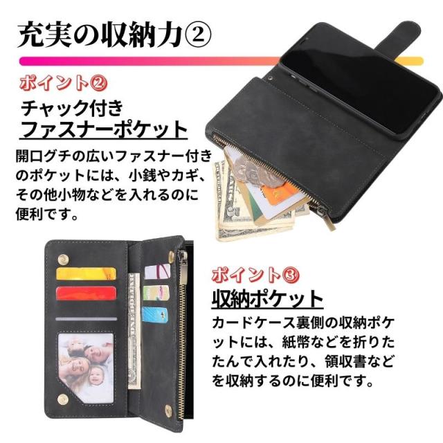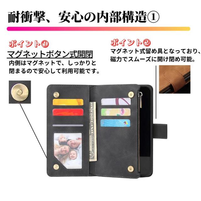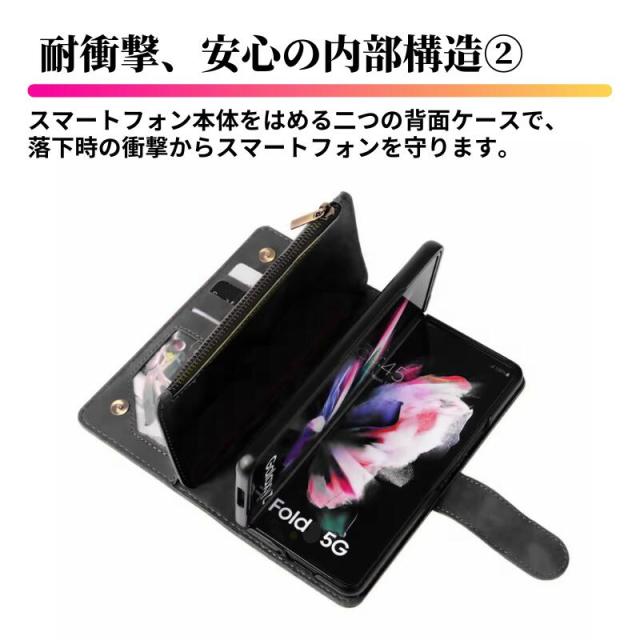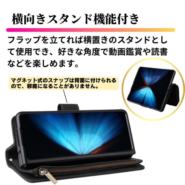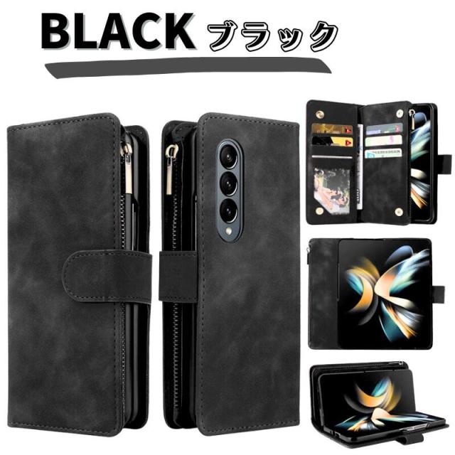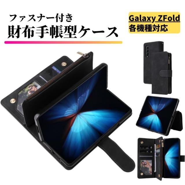 Galaxy Z Fold ケース 手帳型 お財布 レザー カードケース ジップファスナー収納付 スマホケース 手帳 サムスン ギャラクシー Z Fold7 Z Fold6 Z Fold5 Z Fold4 Z Fold3 ブラック 黒