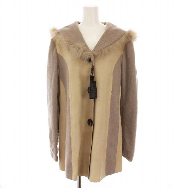 【中古】リサ コンテ Lisa Conte コート レザー 切替 ファー付き アウター 46 ベージュ グレージュ /YM レディース