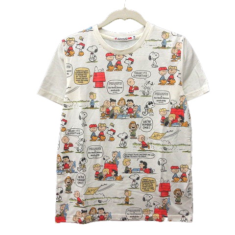 【中古】ユニクロ UNIQLO カットソー Tシャツ クルーネック 総柄 半袖 150 白 アイボリー /MN ●RY キッズ