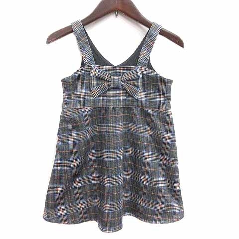 【中古】moujonjon ワンピース ジャンパースカート ミニ リボン グレンチェック ノースリーブ 110 /YK ●RY キッズ