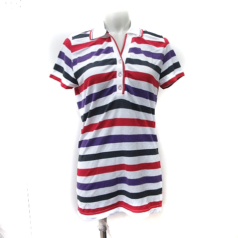 【中古】ミズノ MIZUNO GOLF ポロシャツ 鹿の子 ボーダー 半袖 M マルチカラー /YI レディース