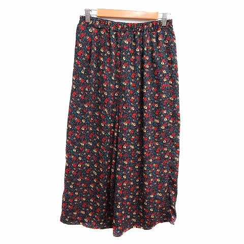 【中古】アースミュージック&エコロジー EARTH MUSIC & ECOLOGY ワイドパンツ スカンツ 花柄 F 紺 ●RY レディース
