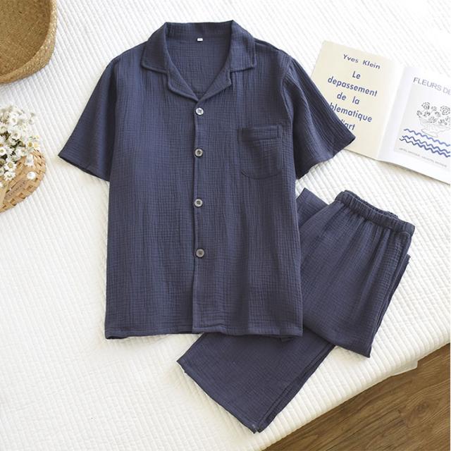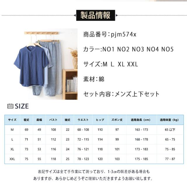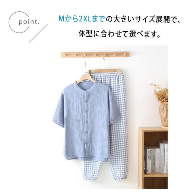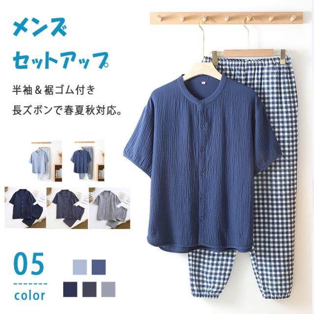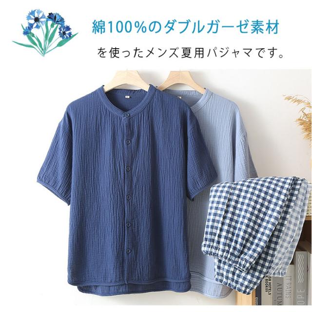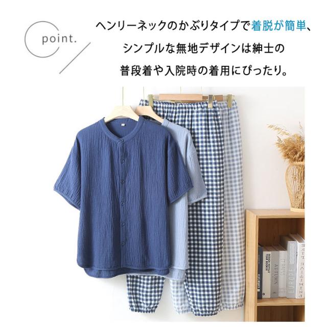 商品名 | パジャマ メンズ 夏 半袖 長ズボン 綿100% ダブルガーゼ 2重ガーゼ ヘンリーネック かぶりタイプ ルームウェア 無地 コットン 紳士 M L XL 2XL 大きいサイズ 入院 プレゼント ギフト |