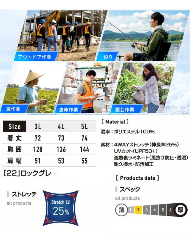 | 説明 | 作業服・空調服を専門に取り扱うワーク系老舗メーカーから直接仕入れた信頼の品質。 小型ながらも最大約8時間の連続使用が可能なパワフルファンと、風量を自在に調整できる高機能バッテリーをセットにしたカジュアルベスト。 UVカット・ストレッチ性に優れた4WAYストレッチ生地を採用し、動きやすく快適な着心地を実現。さらに耐久撥水加工付きで、野外作業からレジャー、アウトドア、スポーツ観戦まで幅広く活躍します。 ■機能 ・高出力ファン+小型バッテリーで最大約8時間使用可能 ・風量は強/中/弱モードを切替可能(自動切替機能付き) ・UVカット(UPF50+)、通気性、速乾性、耐久撥水 ・ストレッチ性25%の動きやすい4WAY生地 ・マルチポケット付きで収納性も抜群 ■セット内容 ・デバイスフルセット(バッテリー1組+ファン1組) ・専用ウェア1組 ■バッテリー仕様 ・定格容量:7.26V / 3200mAh ・充電時間:約3.5時間 ・質量:約140g ・外形寸法:幅59×高99×厚22mm ・定格出力:10V / 8.5V / 7V / 6V ■おすすめシーン 建設現場・建築作業・農作業・釣り・レジャー・フェス・野球観戦・アウトドアなど 夏場の暑さ対策に最適です! |